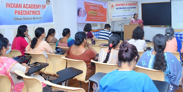 The Departments of Child Health Nursing and Community Health Nursing, Manipal College of Nursing (MCON), Manipal and the Department of Paediatrics, Kasturba Medical College (KMC), Manipal, Manipal Academy of Higher Education (MAHE) in collaboration with the Indian Academy of Pediatrics (IAP), Udupi District Branch observed ‘World Breastfeeding Week 2022’ on the theme “Breastfeeding Friendly Hospitals in India and Step up for breastfeeding - Education and Support” with various activities conducted from 1st to 7th August 2022. The programme was conducted with an aim to advocate breastfeeding friendly practices in hospitals and create awareness among health care professionals and the public to support breastfeeding.