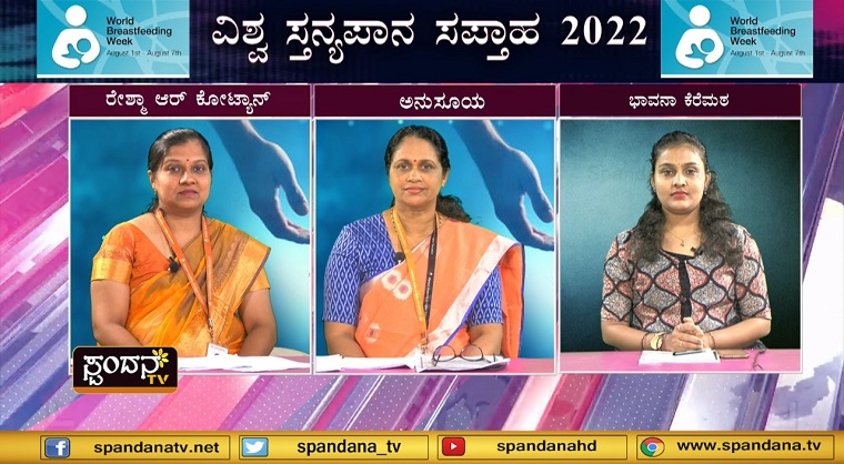 Community awareness to the public on “Thayiya Ede Haalu Amrutha” was done by organizing an awareness program for the general public on 6th August 2022 through an interview on Spandana TV. Dr. Ansuya, Assistant Professor highlighted the theme of World Breastfeeding Week 2022, breastmilk production, preparation to be done by antenatal mothers to promote breastfeeding, positions of breastfeeding, diet during lactation, and briefly about weaning diet. Mrs. Reshma Kotian, Lecturer explained on importance of early initiation of breastfeeding, the composition of breast milk, duration of providing breast milk, infant hunger cues, and tips for working mothers to continue breastfeeding. The program concluded by emphasizing the myths about diet for breastfeeding mothers and the responsibility of the family members and the general public on supporting mothers in breastfeeding. Mrs. Bhavana Vishumurthy Keremata, Anchor of Spandana TV hosted the program.