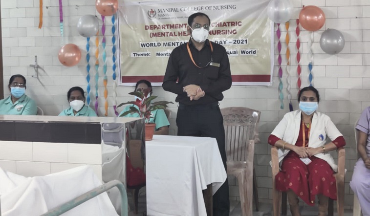 Various activities were organized at the Psychiatric ward on 8th October 2021 as a part of World Mental Health Day, 2021. The programme started with conducting games for the SM7 ward inmates. A formal program was conducted by welcoming the chief guest and the audience by Sr. Reena TY, 2nd Year MSc Psychiatric nursing speciality student. Dr Ravindra Munoli, Associate Professor, Department of Psychiatry, Kasturba Hospital, Manipal was the chief guest for the official program. He addressed the patients and caregivers and talked about the importance of mental health and given awareness regarding the facilities available in hospitals and Communities. In his speech, he has discussed the day’s theme by highlighting unequal access to mental health care across the world. Prizes were distributed to the winners of the games. The program was concluded with a vote of thanks by Ms Preejana Sharma, 2nd year MSc psychiatric nursing speciality student.