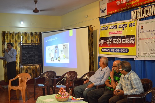 To commemorate the World Mental Health Day, faculty and 2nd Year M.Sc. Nursing students of Department of Psychiatric Nursing, Manipal College of Nursing, Manipal, organized programs on the 8th and 11th October 2016 in Manasa Special School, Psychiatric ward of Kasturba Hospital, Hombelaku and Asare.