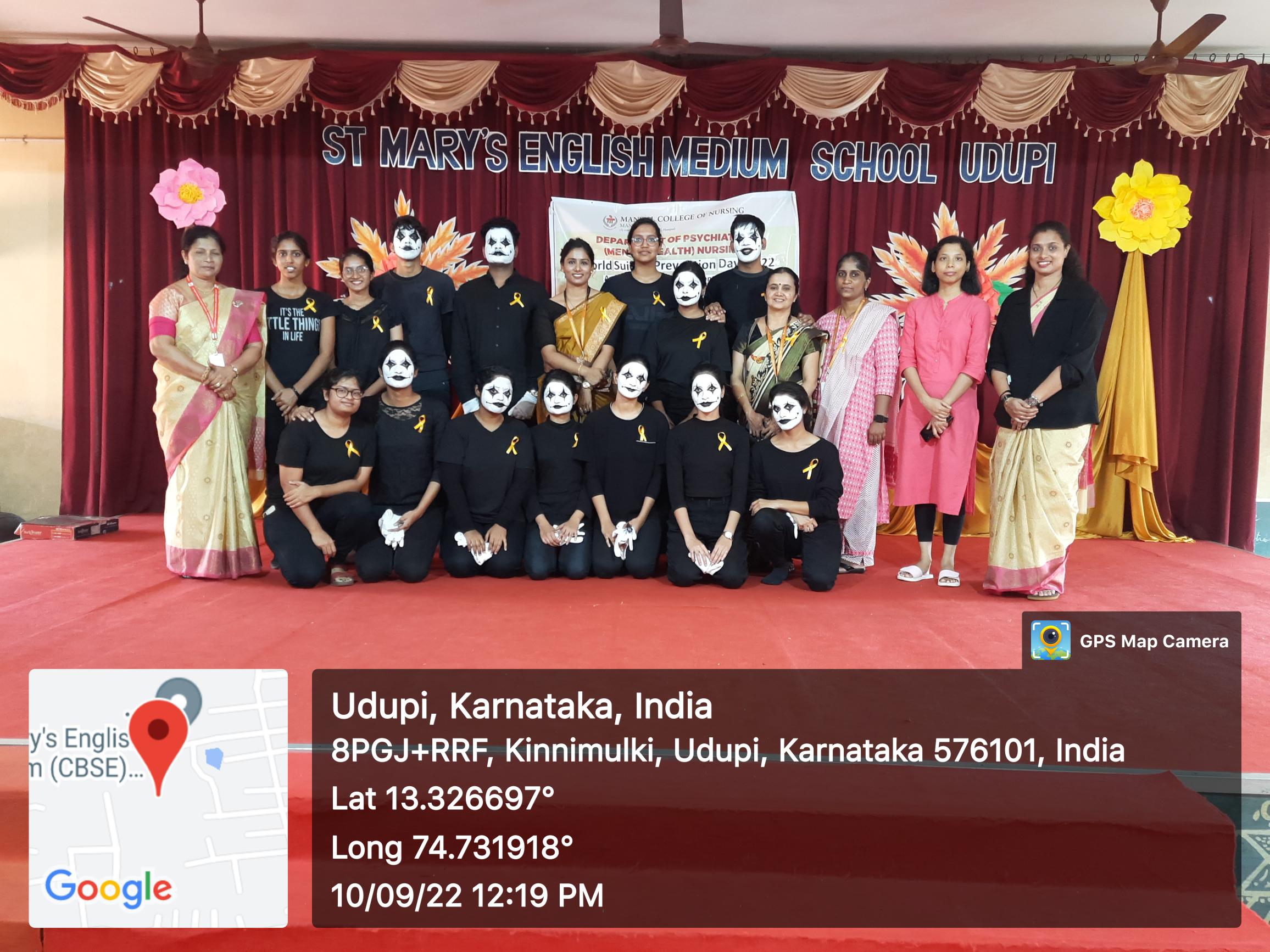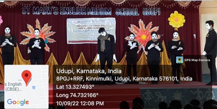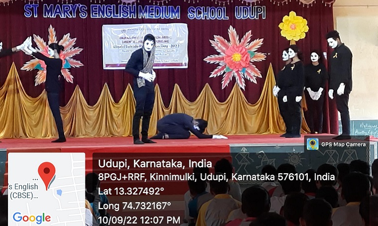 A school-based awareness program on “Prevention of Suicide: Creating Hope through Action” was organised at St. Mary’s English Medium School, Kannarapady, Udupi on 10.9.2022 between 11:00-12:00 noon. Around 150 school children along with six class teachers attended the program. Mrs. Flavia Sharlet Noronha, Assistant Professor, Department of Psychiatric (Mental Health) Nursing, MCON, MAHE was the resource person for the program. She spoke on the warning signs, especially among the students, myths and facts about suicide, and simple preventive measures. The 4th year BSc Nursing students led by Ms Maithrayee Sen and Mr. Sohan Fernandes played a mime on causes and prevention of suicide in our society. This mime was well appreciated by the school children and their teachers.