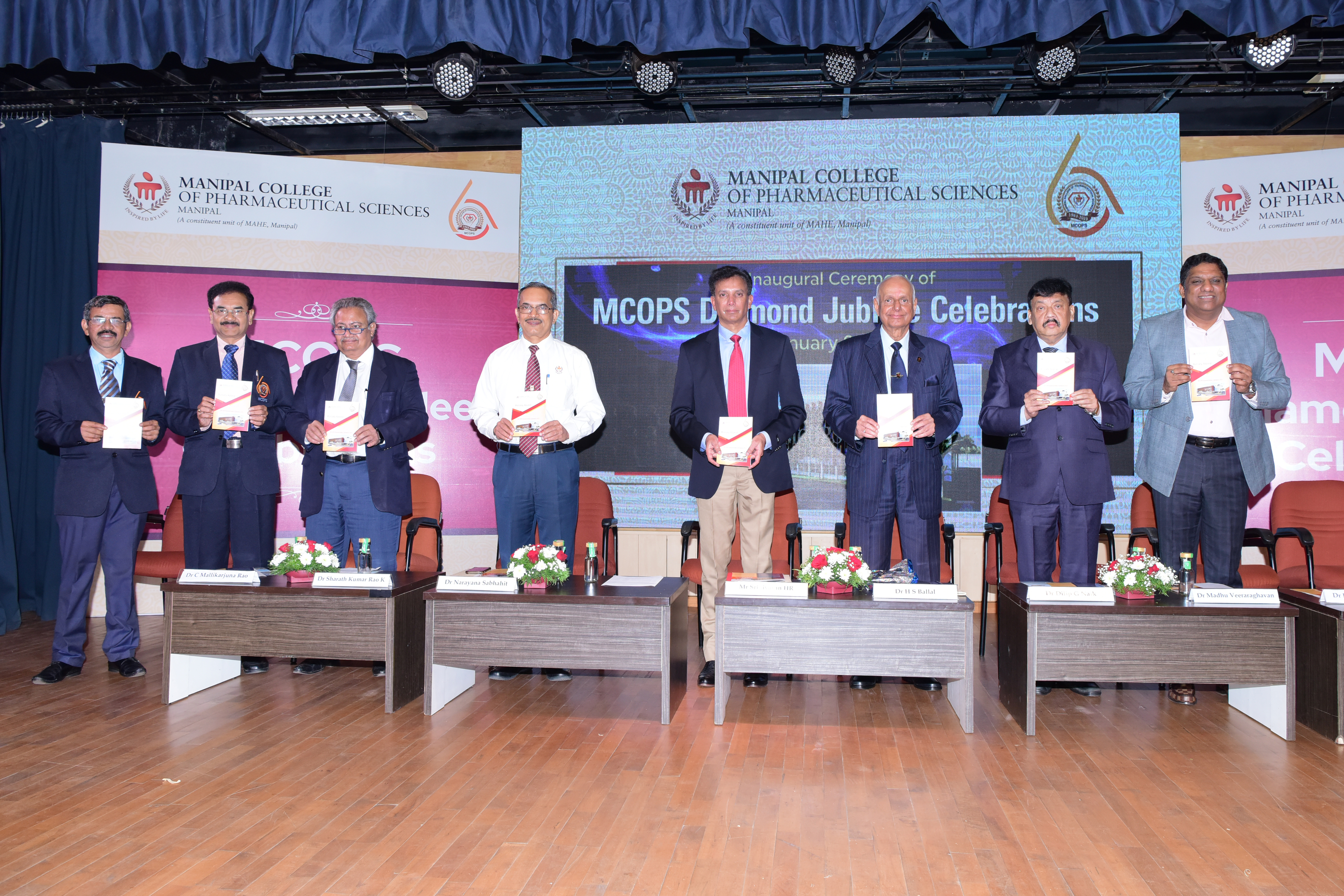 Year 2023 marks a major milestone for Manipal College of Pharmaceutical Sciences (MCOPS) as it celebrates its Diamond Jubilee. Year-long celebration flagged off on Thursday, 5 January 2023 at Dr TMA Pai Hall, Manipal. Diamond Jubilee Celebration was inaugurated by Mr HR Srinivasan, Chief Executive Officer, Navitas Life Sciences. The function was presided by Dr HS Ballal, Pro Chancellor, MAHE.