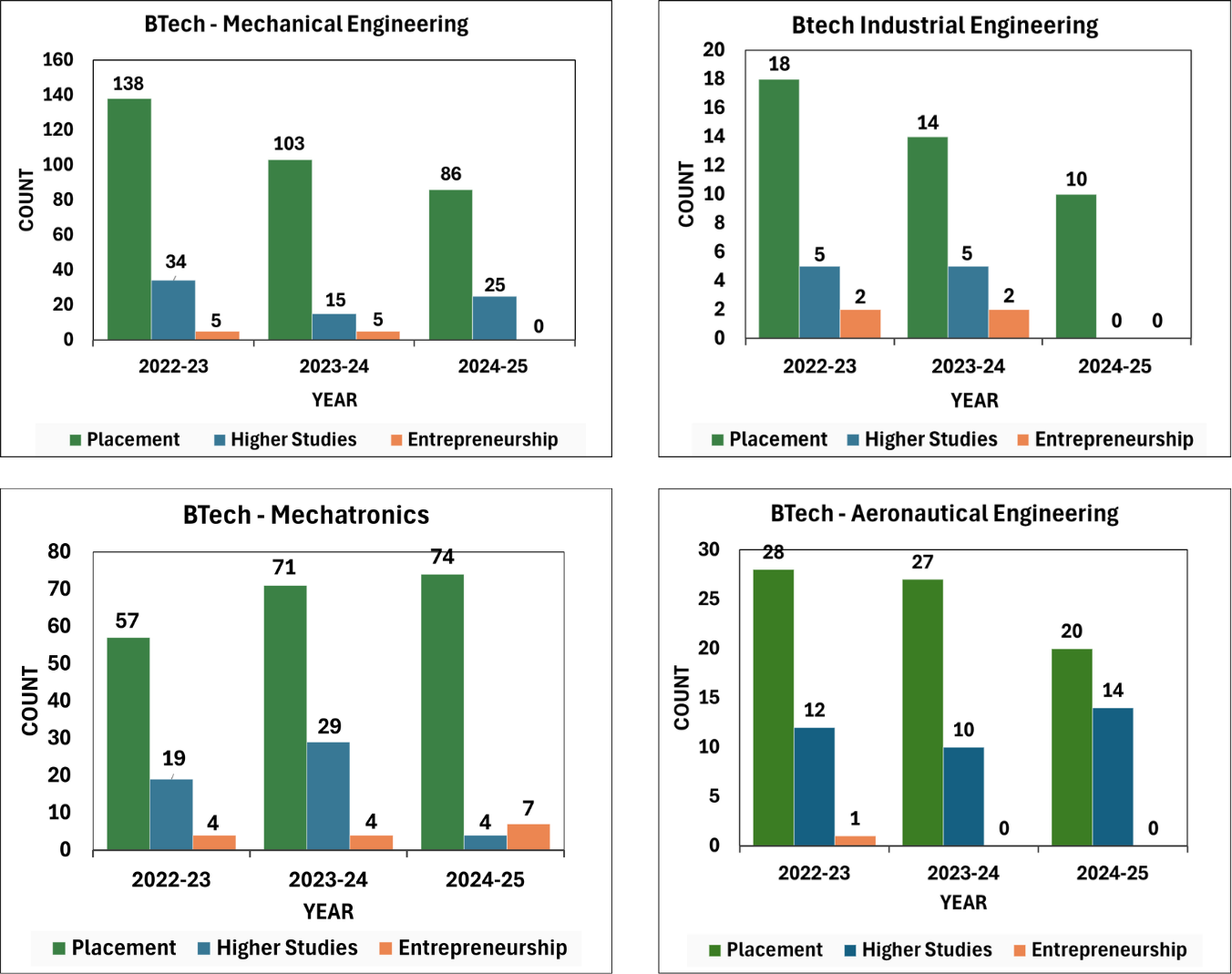 The school is well supported by the Institute placement team. The placement team is headed by Associate Director (Industrial Liaison, Placement & Practice School) and oversees the entire placement process in the institution with the help of school coordinators. Students are provided with opportunities for Internships, Placements, Pre-placement offers (PPO) in core companies and ITES. Our students from School of Mechanical Engineering get recruited by a wide range of companies.