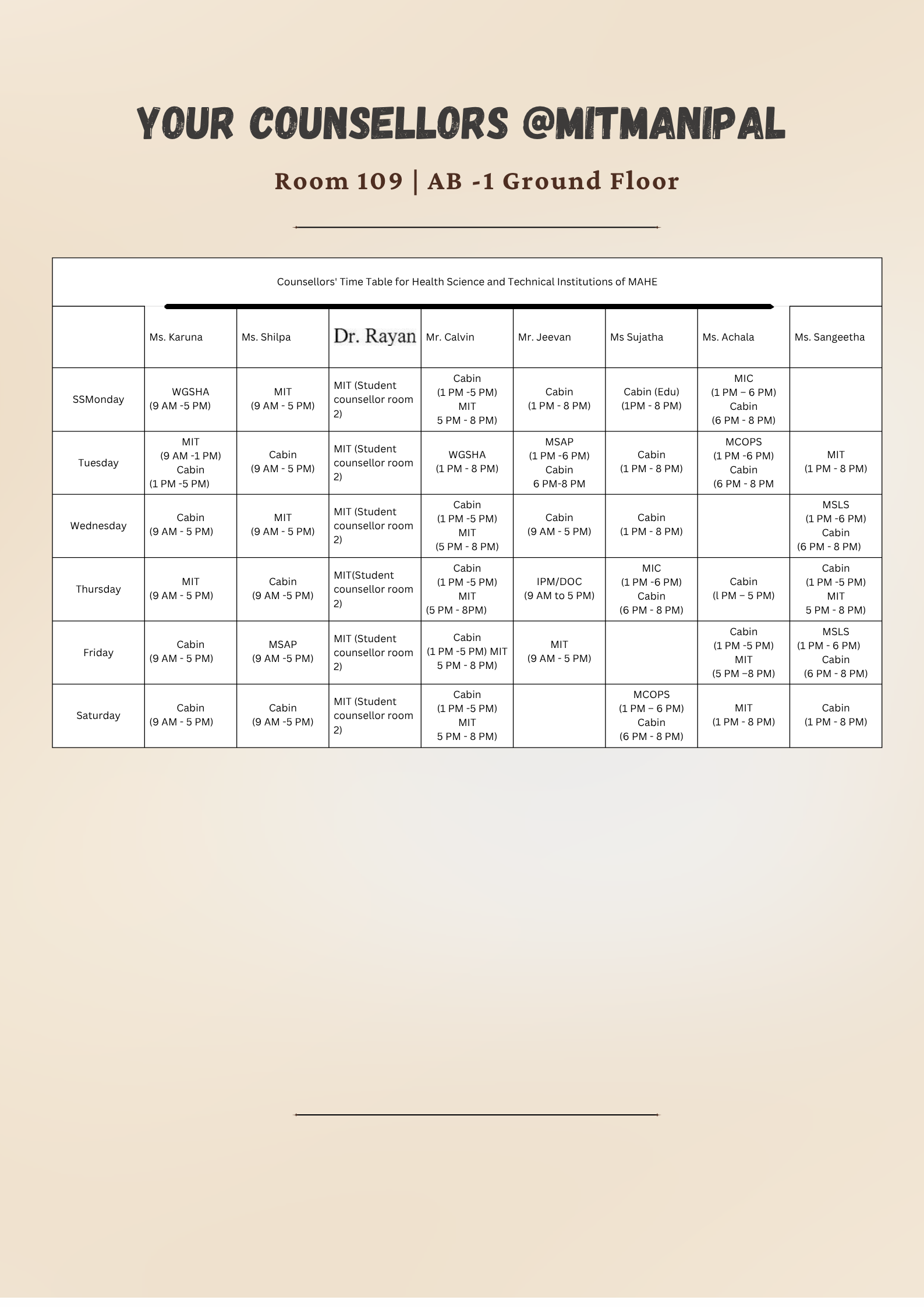 Looking after students' well-being and academic success is paramount. Reach out to office of Student welfare to connect you to our Counselor.
