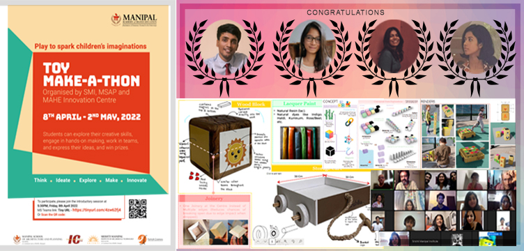 Congratulations to the winners of the Toy-Make-A-Thon competition hosted by SMI, MSAP, and Mahe Innovation Centre. The team worked, designed, and prototyped a simple toy for kids of 2 to 3 years which was mentored by Ar.Anupama Pavithran and Ms.Kranti L Satardekar.