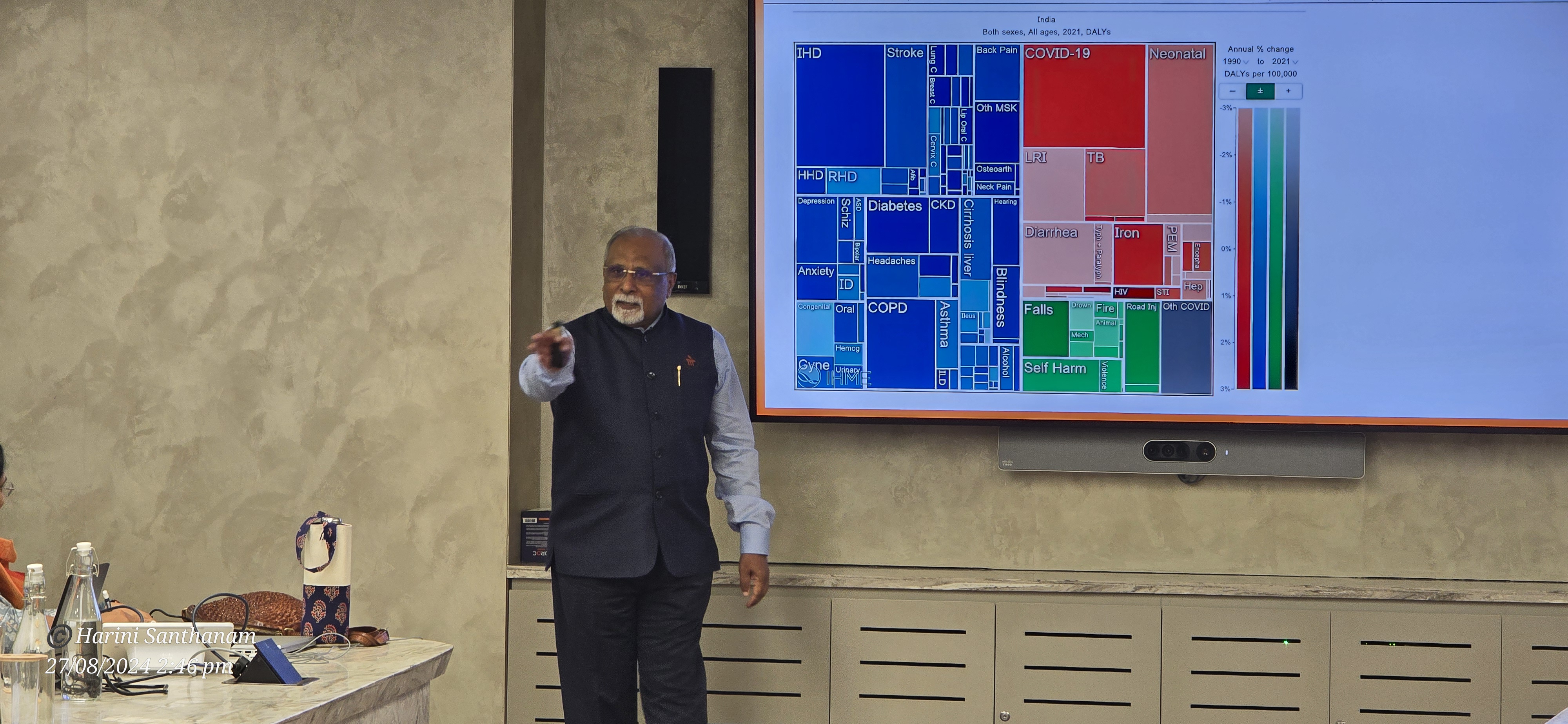 On 27th August 2024, we had the opportunity to host a distinguished scholar and public health expert, Prof. Cherian Varghese, Director, Prasanna School of Public Health, MAHE Manipal at DPP. It was delightful to listen to and learn from his insightful talk on "Addressing the Public health and health services challenges of non-communicable diseases through policy interventions". Students of MA programme enjoyed discussing and interacting with Prof. Cherian. Faculty members and PhD scholars also interacted with him.