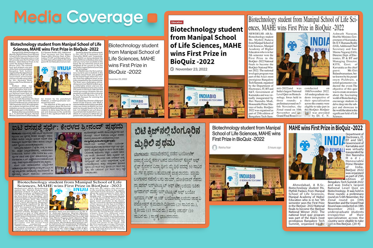 Speaking about the achievement, Lt. Gen. (Dr.) M. D. Venkatesh, Vice Chancellor, MAHE said, “Congratulations Mythili on being declared the National Winner at BioQuiz 2022, and I wish you many more accolades in the future. We are extremely proud and delighted of her success as she has won India's largest National Level Quiz on Biotechnology. “