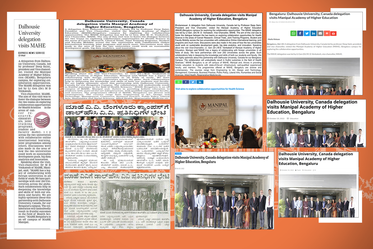 Speaking about the visit Vice Chancellor, Lt. Gen (Dr.) M.D. Venkatesh of Manipal Academy of Higher Education, Manipal said, “MAHE has a legacy of collaborating with foreign universities in all fields of study. We have partnerships with over 250 Universities across the globe. Such collaborations help in deepening the knowledge and skills of both our students and faculty. We are highly optimistic about this partnership with Dalhousie University, Canada for our Bengaluru Campus. The collaboration will undoubtedly result in fruitful outcomes in the field of Health Sciences”