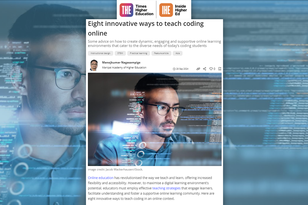 Manipal, 18 October 2024: Exclusive article, Eight Innovative ways to teach coding online, by Dr Manojkumar Nagasampige, Director, Directorate of Online Education, MAHE, Manipal.