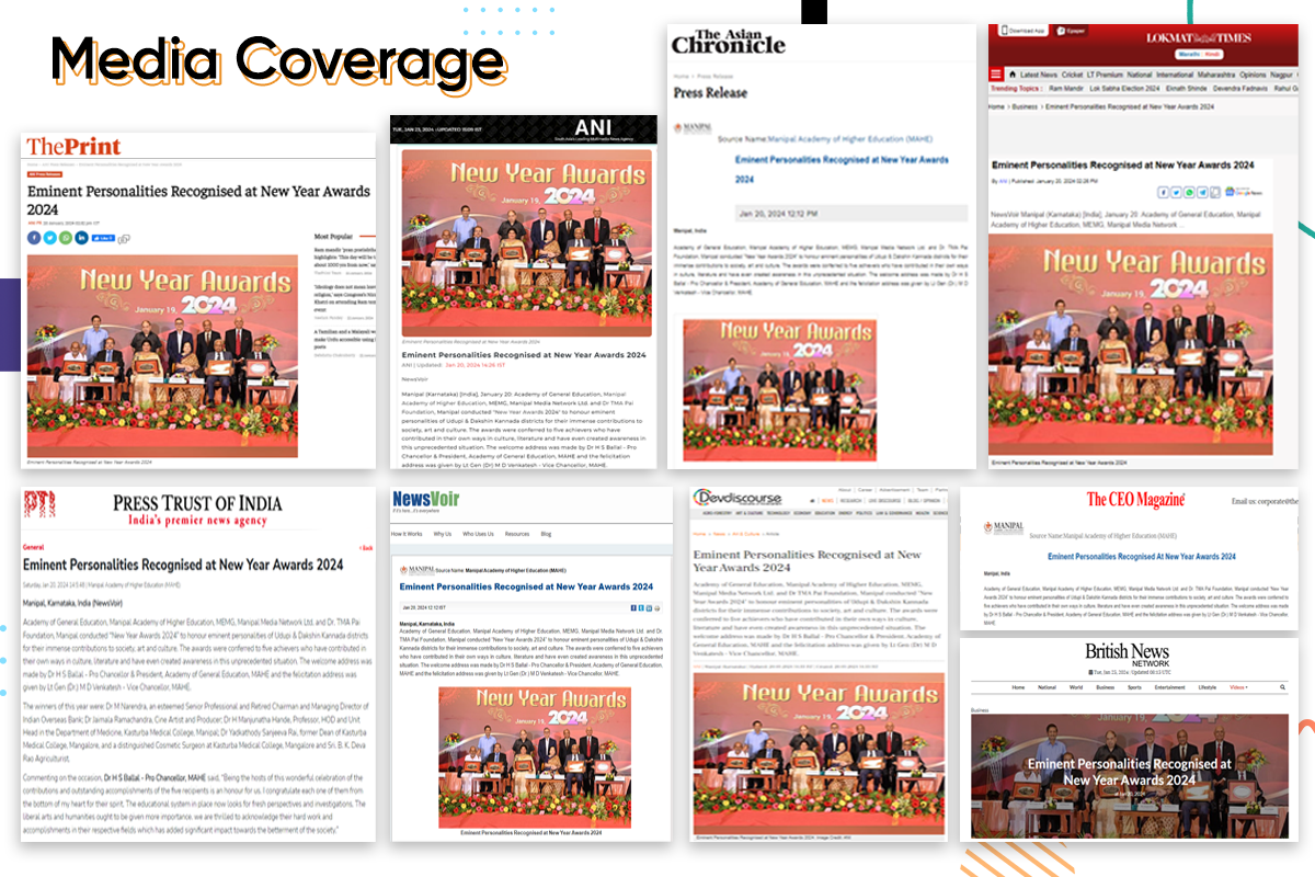 Lt Gen (Dr) M D Venkatesh, Vice Chancellor, MAHE, sharing his excitement said, “We are exuberant to felicitate the outstanding achievements of the new year awardees, and this is undoubtedly a terrific occasion for us. We value their unparalleled contributions to literature, agriculture, medicine, culture, and mankind. They have gone above and beyond the call of duty to establish an example for others to follow and instil virtues in the community. The most effective way to address societal issues or raise awareness is through these literary and artistic disciplines. Honouring the achievers serves a dual purpose: it not only shows appreciation and recognition for their hard work, but it also serves as a springboard for young people to aim higher”.