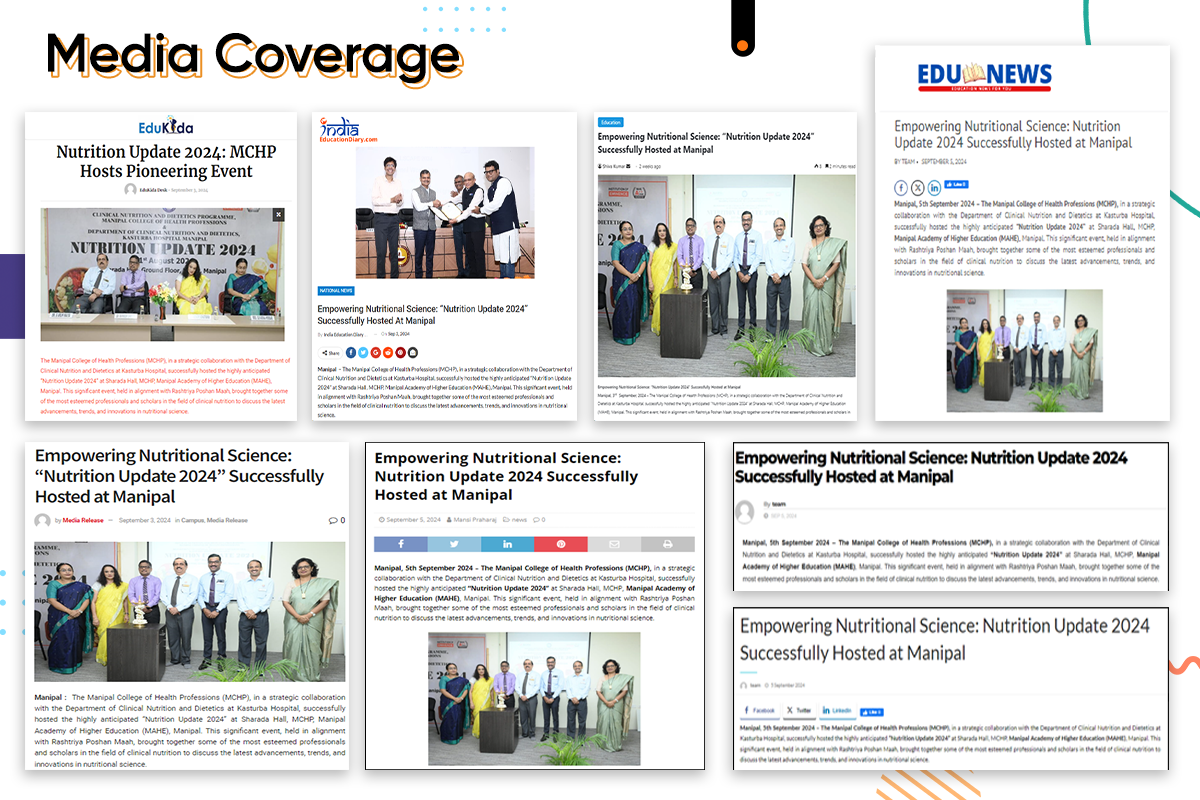 Manipal, 2nd September 2024 – The Manipal College of Health Professions (MCHP), in a strategic collaboration with the Department of Clinical Nutrition and Dietetics at Kasturba Hospital, successfully hosted the highly anticipated "Nutrition Update 2024" at Sharada Hall, MCHP, Manipal Academy of Higher Education (MAHE), Manipal. This significant event, held in alignment with Rashtriya Poshan Maah, brought together some of the most esteemed professionals and scholars in the field of clinical nutrition to discuss the latest advancements, trends, and innovations in nutritional science.