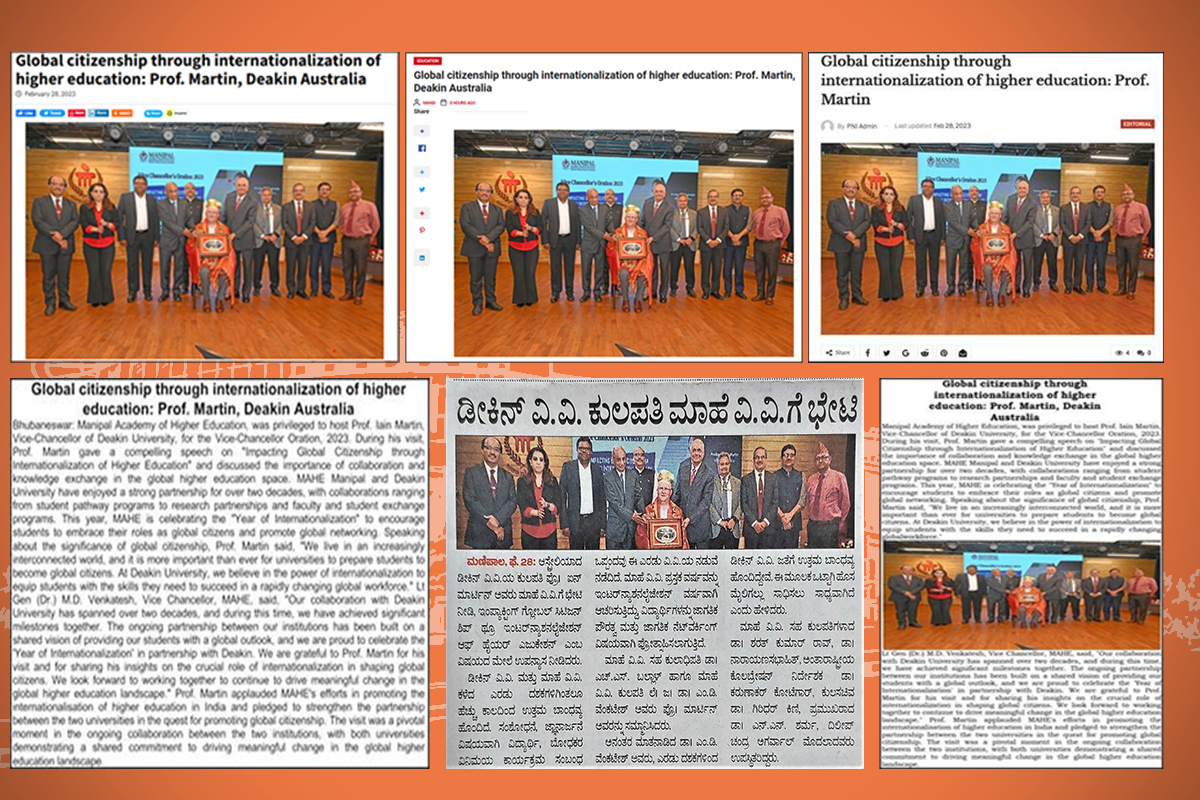 MAHE Manipal and Deakin University have enjoyed a strong partnership for over two decades, with collaborations ranging from student pathway programs to research partnerships and faculty and student exchange programs. This year, MAHE is celebrating the "Year of Internationalization" to encourage students to embrace their roles as global citizens and promote global networking.