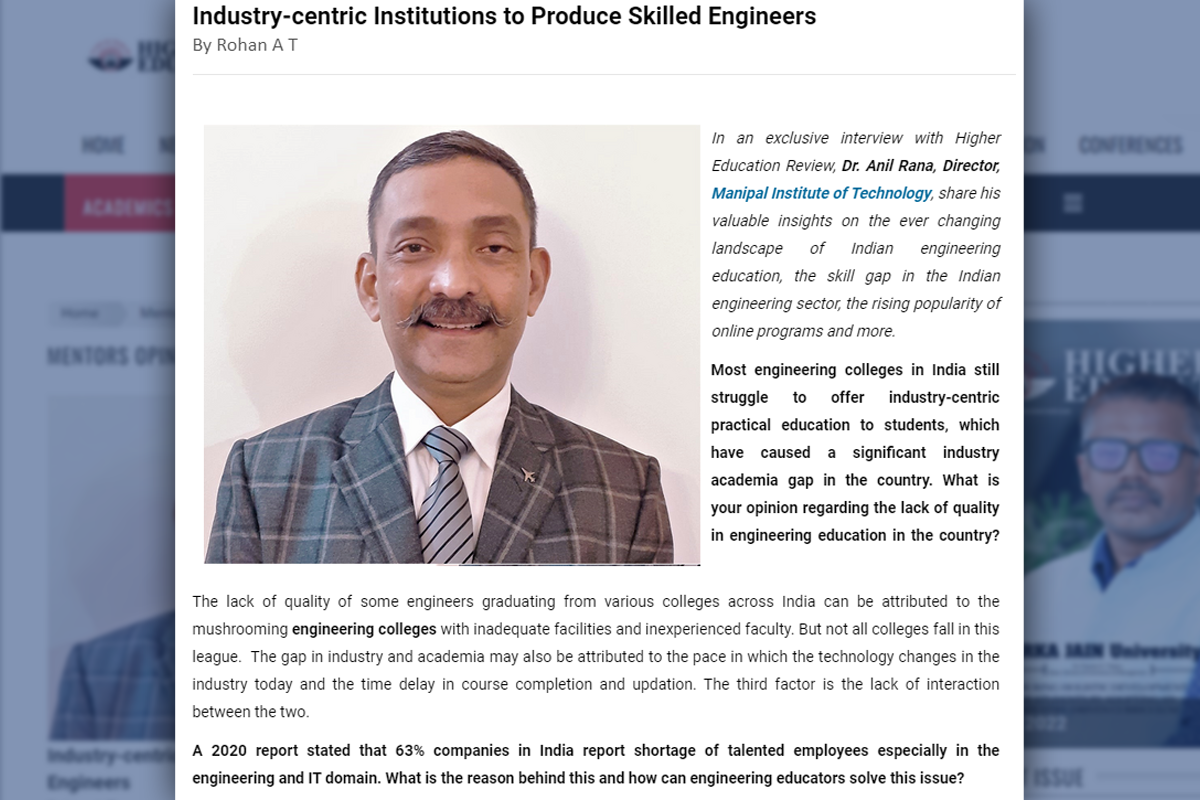 Manipal, 08th August 2022: Cdr (Dr) Anil Rana, Director, Manipal Institute of Technology (MIT), Manipal, shared his valuable insights on the ever-changing landscape of Indian engineering education, the skill gap in the Indian engineering sector, and the rising popularity of online programs, and more.
