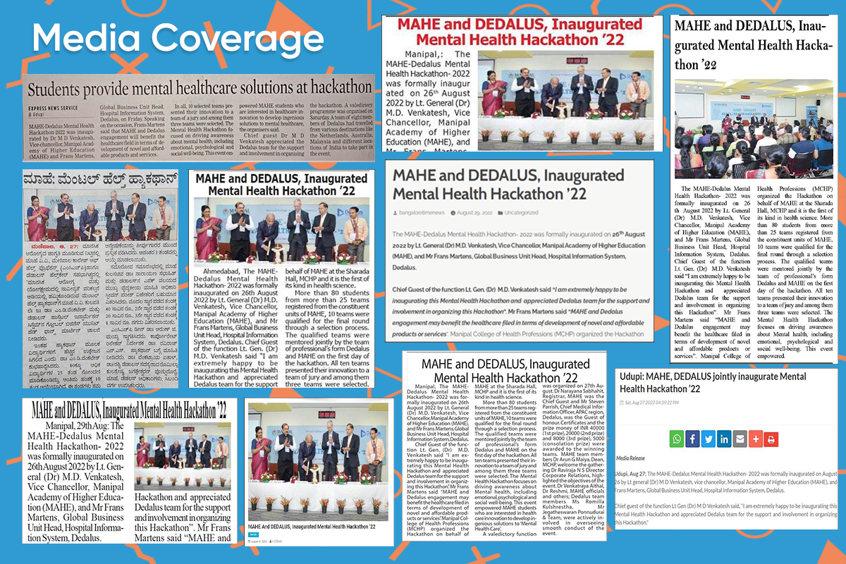 More than 80 students from more than 25 teams registered from the constituent units of MAHE, 10 teams were qualified for the final round through a selection process. The qualified teams were mentored jointly by the team of professionals from Dedalus and MAHE on the first day of the hackathon. All ten teams presented their innovation to a team jury and among them, three teams were selected. The Mental Health Hackathon focuses on driving awareness about Mental health, including emotional, psychological, and social well-being. This event empowered MAHE students who are interested in health care innovation to develop ingenious solutions to ‘Mental Health Care.