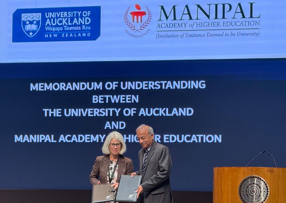 Manipal, March 18, 2025: Manipal Academy of Higher Education (MAHE) entered into a strategic partnership with the University of Auckland, New Zealand’s leading university, by signing a Memorandum of Understanding (MoU) today to foster collaborative initiatives in education and research. This MoU will pave the way for student and faculty exchanges and educational programmes.