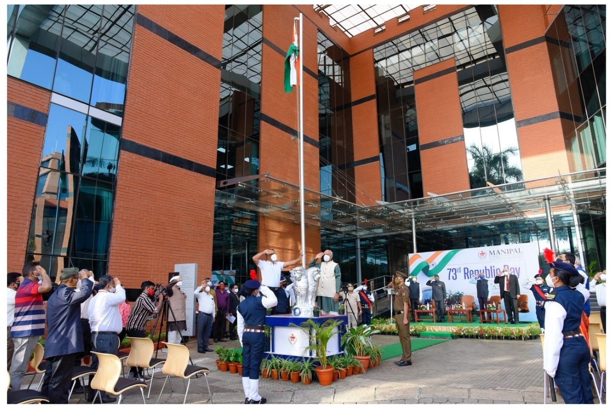 Manipal, 26th January 2022: Manipal Academy of Higher Education celebrated 73rd Republic Day, 2022 in a ceremony befitting the occasion in its campus with enthusiasm and vigour even with the restrictions due to the pandemic.