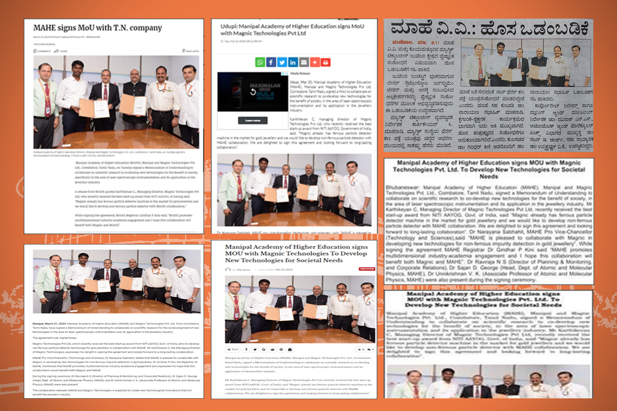 Dr Narayana Sabhahit, MAHE Pro Vice-Chancellor (Technology and Sciences), said “MAHE is pleased to collaborate with Magnic in developing new technologies for non-ferrous impurity detection in gold jewellery”. While signing the agreement MAHE Registrar Dr Giridhar P Kini said “MAHE promotes multidimensional industry-academia engagement and I hope this collaboration will benefit both Magnic and MAHE”.
