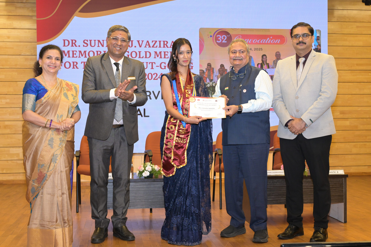 Dr Chaarvi Bansal was honoured with the Dr Sunder J. Vazirani Memorial Gold Medal for the Best Outgoing Student 2024–25.