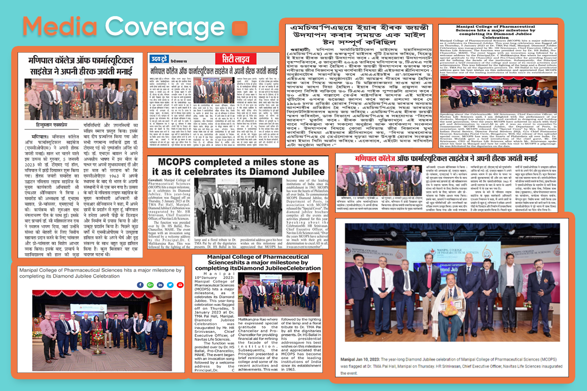 Manipal 10th January 2023: Manipal College of Pharmaceutical Sciences (MCOPS) hits a major milestone, as it celebrates its Diamond Jubilee. This year-long celebration was flagged off on Thursday, 5th January 2023 at Dr. TMA Pai Hall, Manipal. Diamond Jubilee Celebration was inaugurated by Mr. H R Srinivasan, Chief Executive Officer, of Navitas Life Sciences.