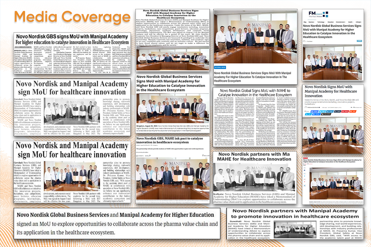 Under the terms of the MoU, MAHE and Novo Nordisk GBS will jointly engage in initiatives, including innovation projects, hackathons, case competitions, guest lectures, education programs, internships, placements, employee development, and corporate social responsibility collaborations. The MoU was signed on August 3 at the Manipal campus and will be effective for a period of two years.
