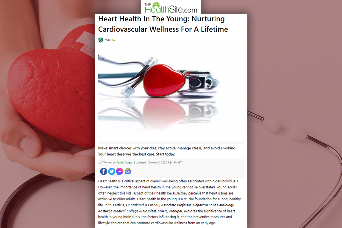 Manipal, 3rd October 2023: The author's article, "Heart Health In The Young: Nurturing Cardiovascular Wellness For A Lifetime", by Dr Mukund A Prabhu, Associate Professor, Department of Cardiology, Kasturba Medical College & Hospital, Manipal.
