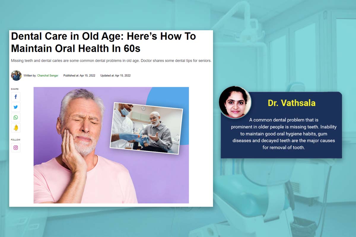In this article, Dr. Vathsala shares that some of the common dental problems frequently seen in older people are wear and tear of teeth, missing teeth, gum diseases, loosening of teeth, and dental caries (decay). She also highlighted how to maintain oral hygiene and some dental care tips for seniors.