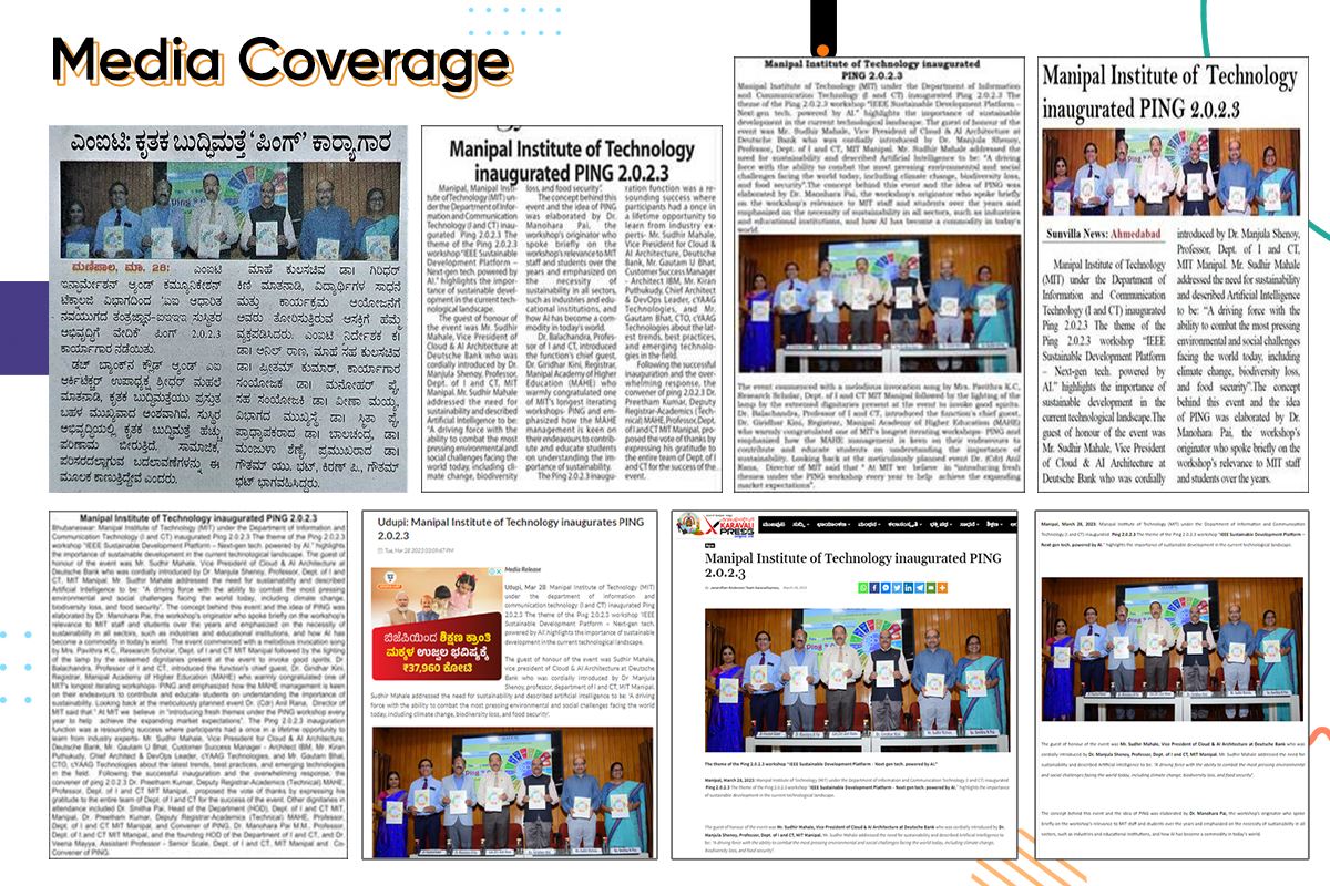 Manipal, March 28, 2023: Manipal Institute of Technology (MIT) under the Department of Information and Communication Technology (I and CT) inaugurated Ping 2.0.2.3 The theme of the Ping 2.0.2.3 workshop “IEEE Sustainable Development Platform – Next-gen tech. powered by AI.” highlights the importance of sustainable development in the current technological landscape.