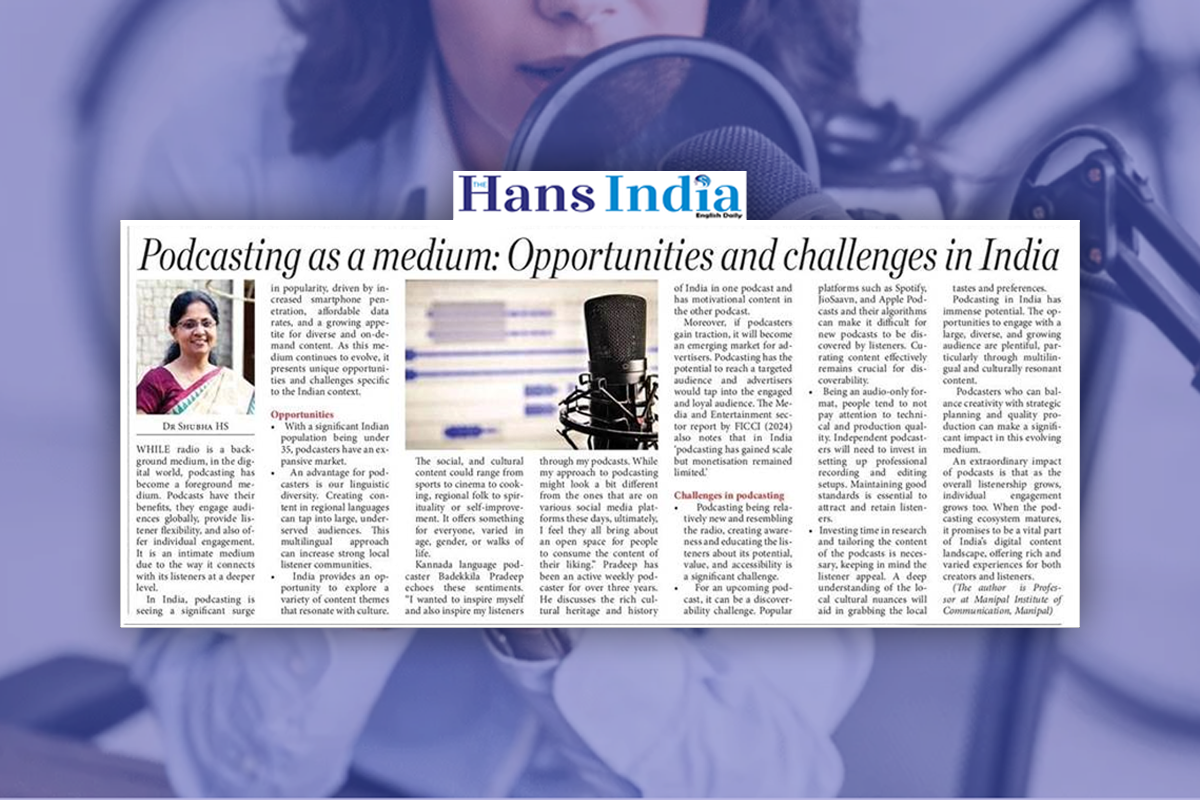 : The author's article, Podcasting as a Medium: Opportunities and Challenges in India, by Dr Shubha H S, Professor, Manipal Institute of Communication (MIC), Manipal.