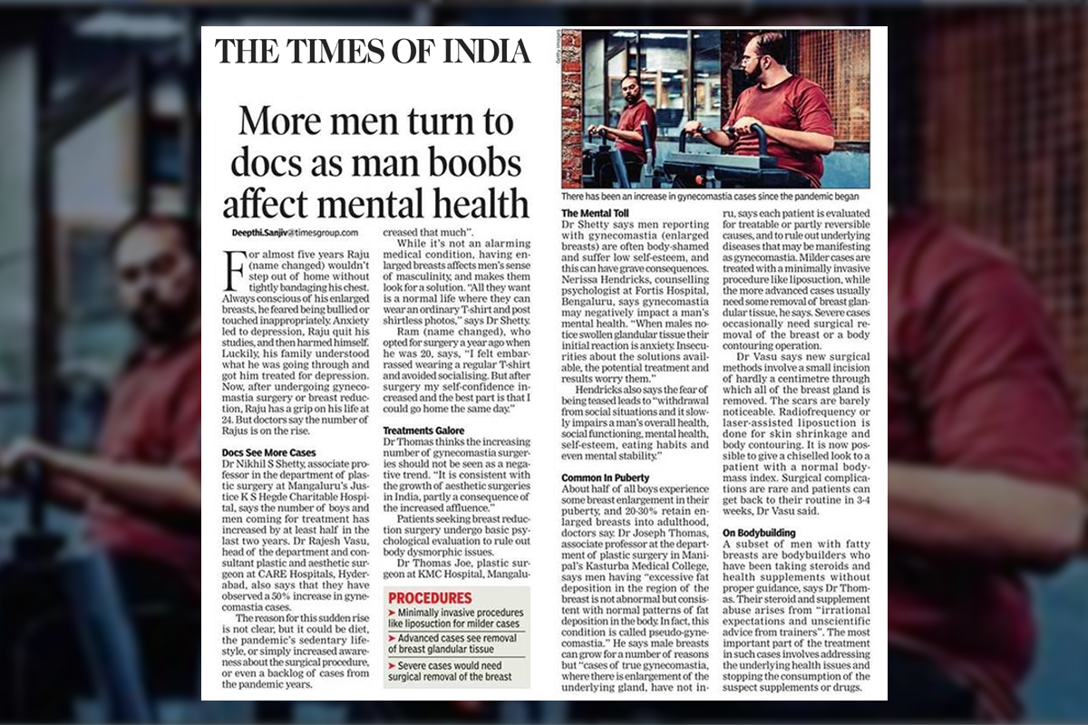 In the article, Dr Joseph Thomas shared his thoughts about the abnormalities of excessive fat deposition in male breasts and how this can be corrected or treated basis the diagnosis in each of the individual case.