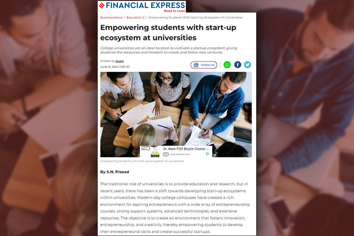 Manipal, 10 June 2023: The author’s article, “Empowering Students with start-up ecosystem at Universities”, by Dr S.N. Prasad, Department of Science and Humanities at Manipal Institute of Technology (MIT), Bengaluru.