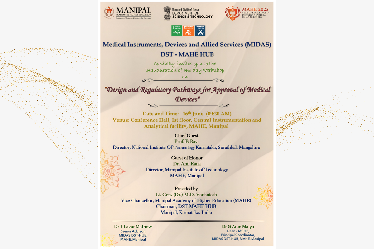 The Workshop on Design and Regulatory Pathways for Approval of Medical Devices will be held on June 16, 2025, from 9:15 am onwards. This workshop aims to provide participants with a comprehensive understanding of the critical steps involved in the design, development, and regulatory approval of medical devices.