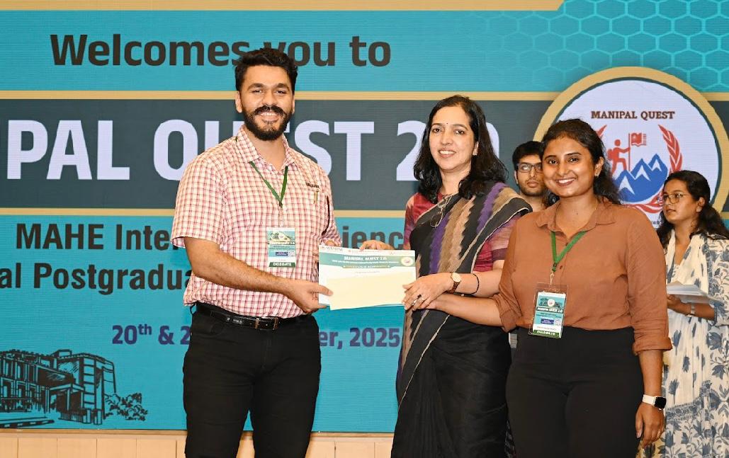 Vishal Mehlawat with Dr Saloni Shetty, both Second Year MPH Programme Students, Department of Global Public Health Policy and Governance (GPHPG), Prasanna School of Public Health (PSPH), Manipal Academy of Higher Education (MAHE), Manipal secured the Second Position in the “Manipal Quest 2.0” under the Community Medicine and Public Health category at the National Conference held at MAHE, Manipal. They participated in scientific poster presentation on September 21, 2025. This platform brought together students and professionals from across the country to showcase their knowledge and skills in public health. Their achievement reflects not only their teamwork and dedication but also their passion for advancing learning and innovation in community medicine and public health at a national level.