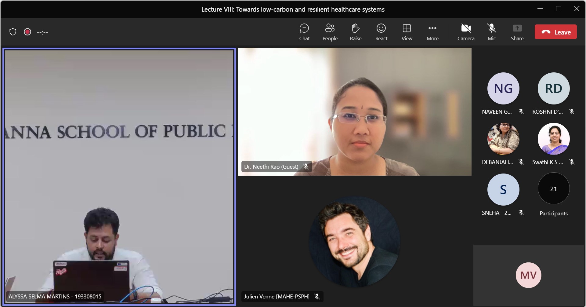 PSPH, MAHE organised Prof Rajani Prasanna Endowment Lecture Series on Climate Change and its Impact on Public Health – Lecture VIII – Towards Low Carbon and Resilient Healthcare Systems.