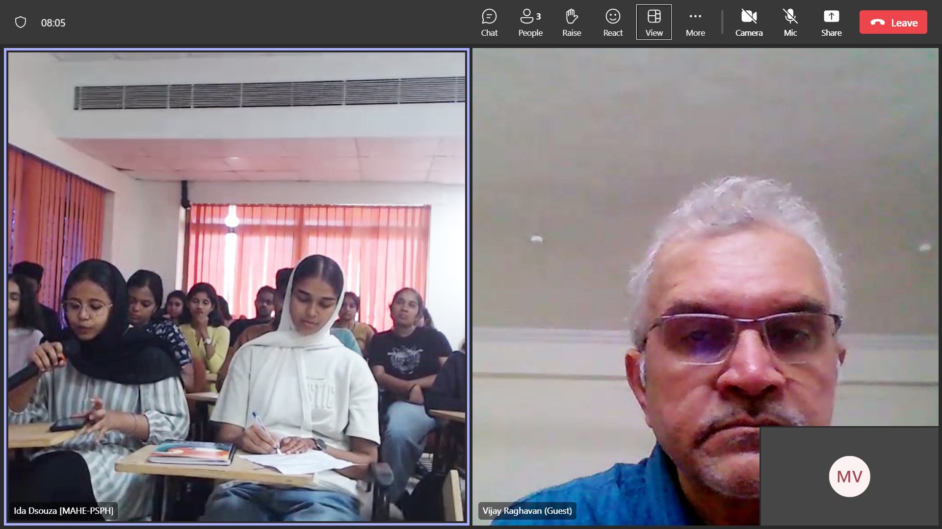 During his talk, Prof Dr Vijaya Raghavan, Professor, Center for Criminology and Justice, School of Social Work, TISS, Mumbai spoke regarding criminology, social justice, regarding Centre for criminology and Social Justice in TISS, Mumbai; regarding various departments, centres, and specializations in TISS; regarding family and child welfare, mental health, public health etc; regarding justice in India, various countries in the world; regarding juvenile justice, how people can help each other to bring about justice, peace, happiness among their fellow human beings.