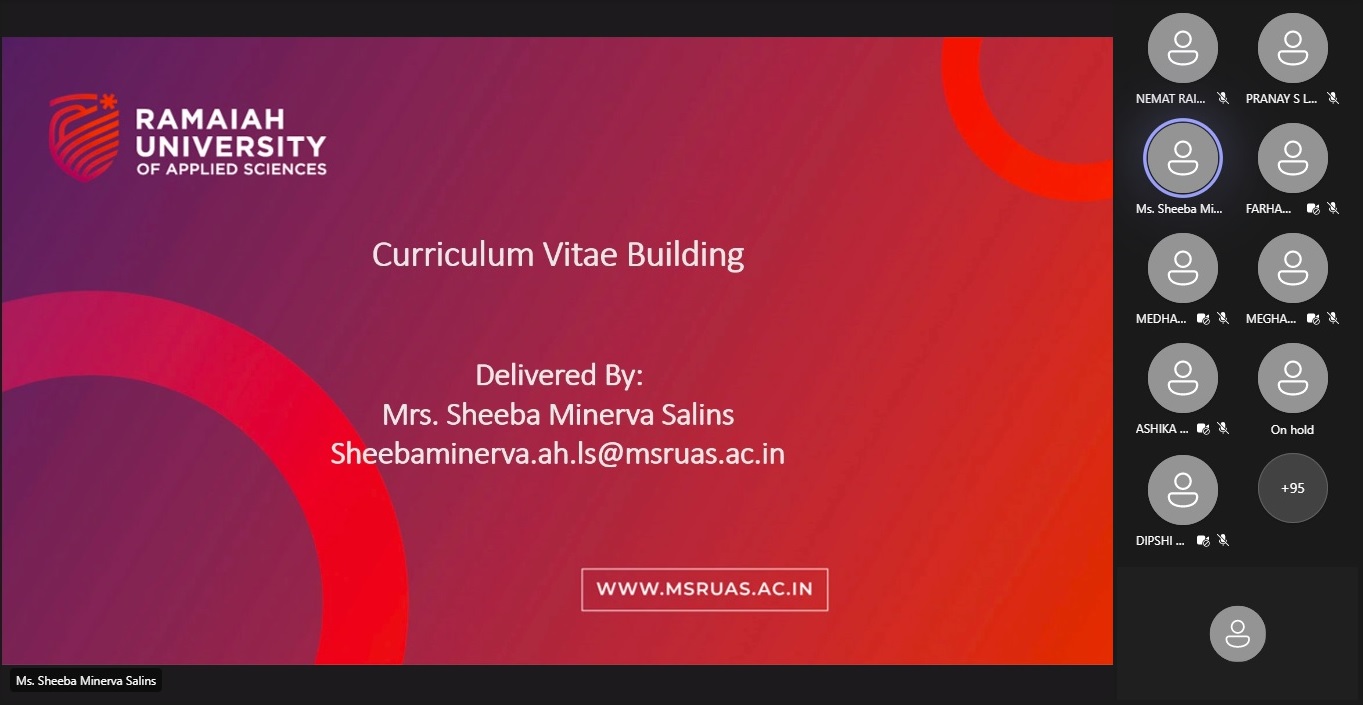 Ms Sheeba Salins, Lecturer, Faculty of Life and Allied Health Sciences, M S Ramaiah University of Applied Health Sciences, Bengaluru trained the students on ‘CV Writing’ & Dr Siddharth Maurya, Consultant, National Health Mission, Ministry of Health and Family Welfare, New Delhi; Mrs Arundhati S V, Associate Professor, Department of Business Administration, Dr Ambedkar Institute of Technology, Bengaluru & Mr Vignesh K, Analytics Consultant, Quantzig, Bengaluru were the panelist for one on one mock interview.