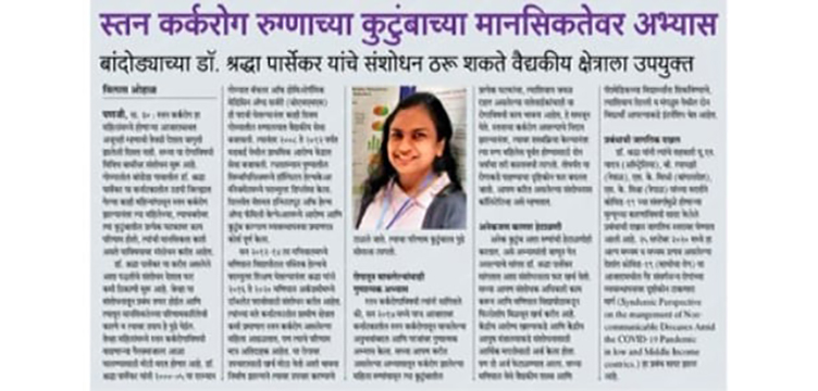 Goa-based Marathi daily "Dainik Gomanthak" interviewed Dr Shradha Parsekar (Research Officer, PHESA, PSPH) on her research on caregivers of women with breast cancer.