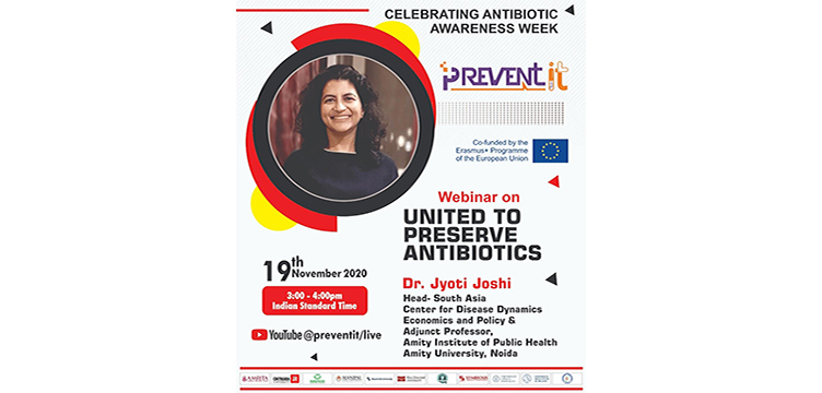 We organized a webinar (an initiative co-funded by the Erasmus+ Programme of the European Union) on the theme "United to Preserve Antibiotics" on November 19, 2020 (15:00-16:00 IST via Zoom Meetings) as part of World Antimicrobial Awareness Week 2020.