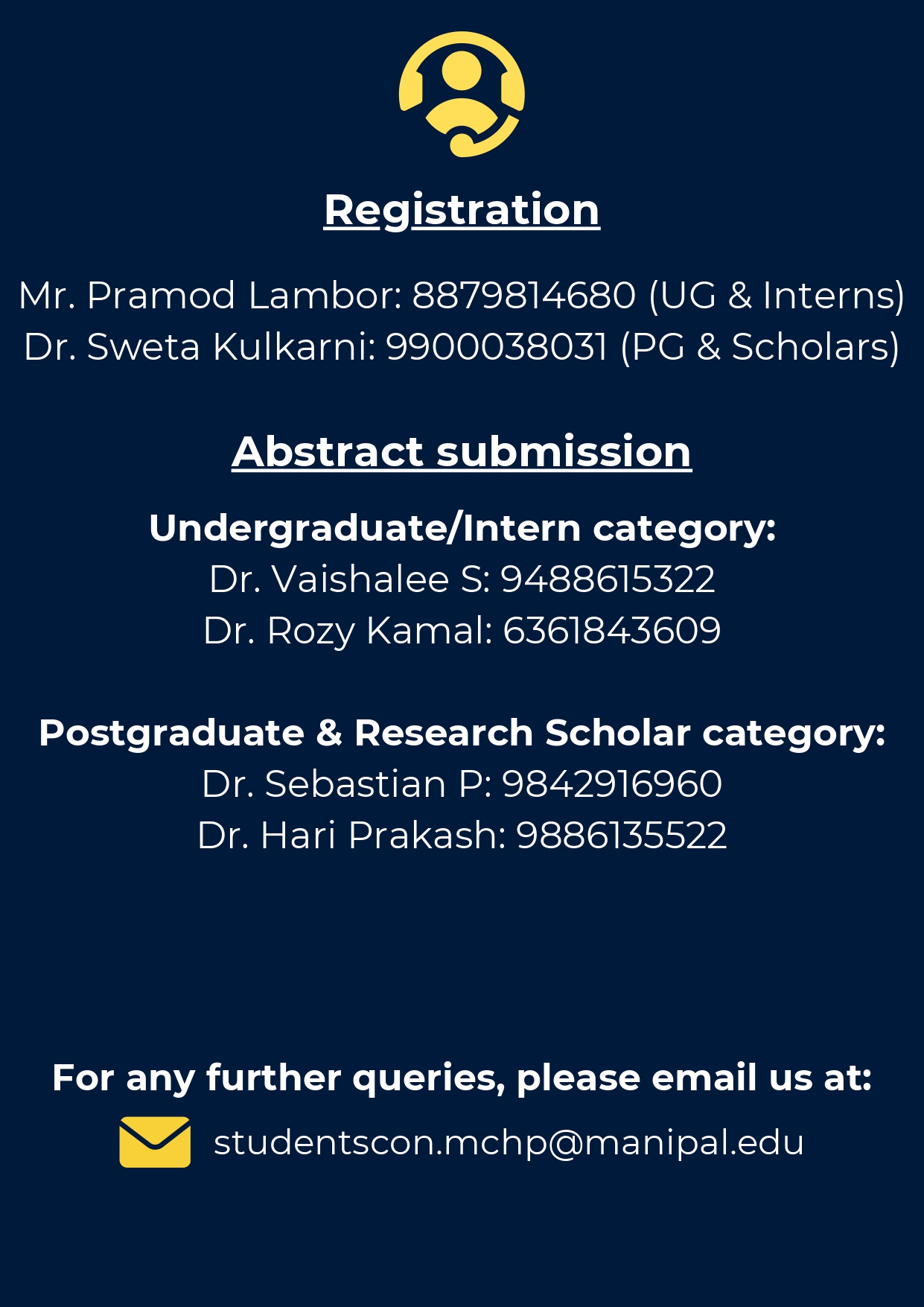 For more information, please get in touch with us at: studentscon.mchp@manipal.edu