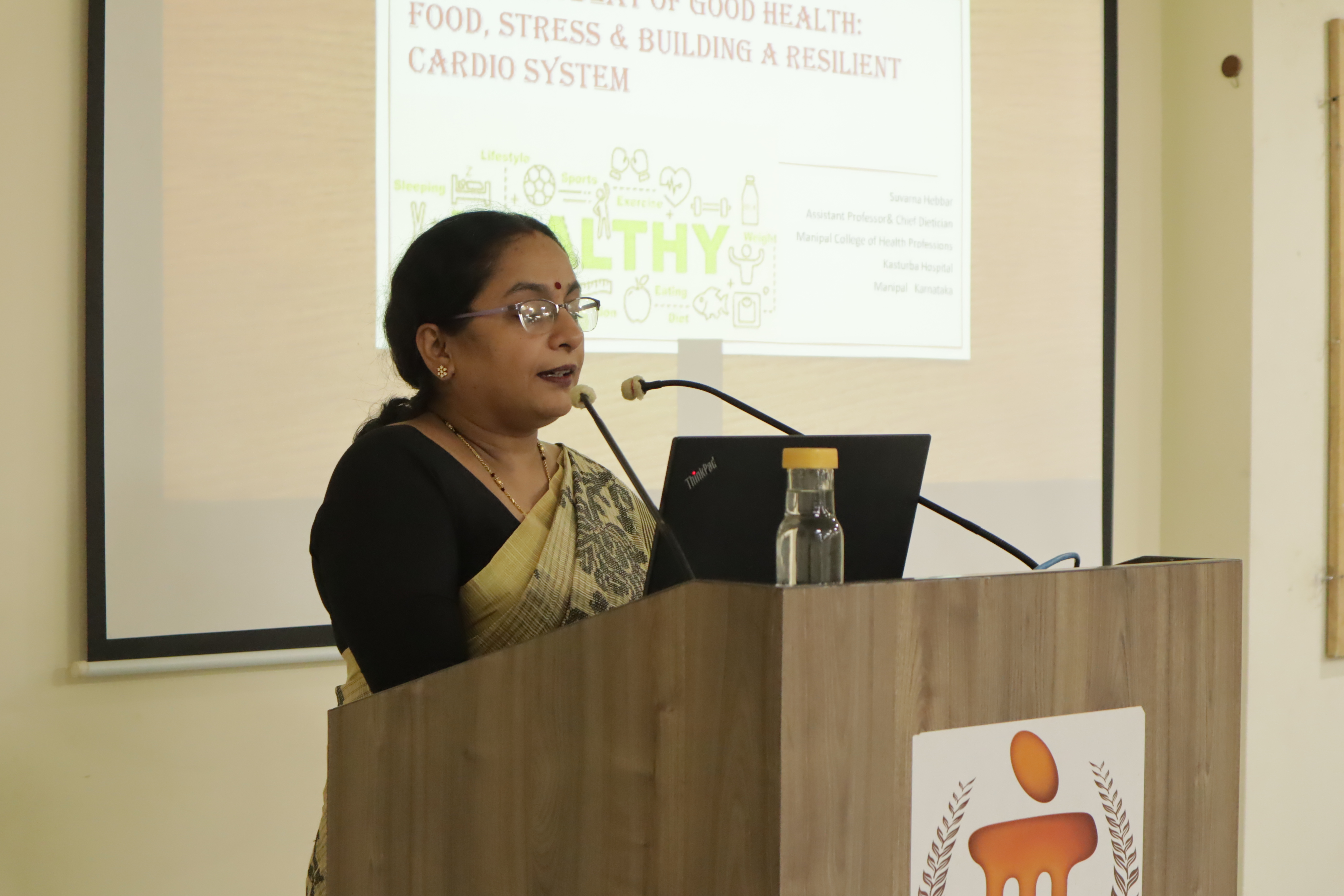 Department of Medical Laboratory Technology, MCHP, MAHE, Manipal conducted a lecture on The Heartbeat of Good Health: Food, Stress and Building a Resilient Cardio system by Ms. Suvarna Hebbar. Madam gave an informative talk on “The Heartbeat of Good Health: Food, Stress and Building a Resilient Cardio system.”