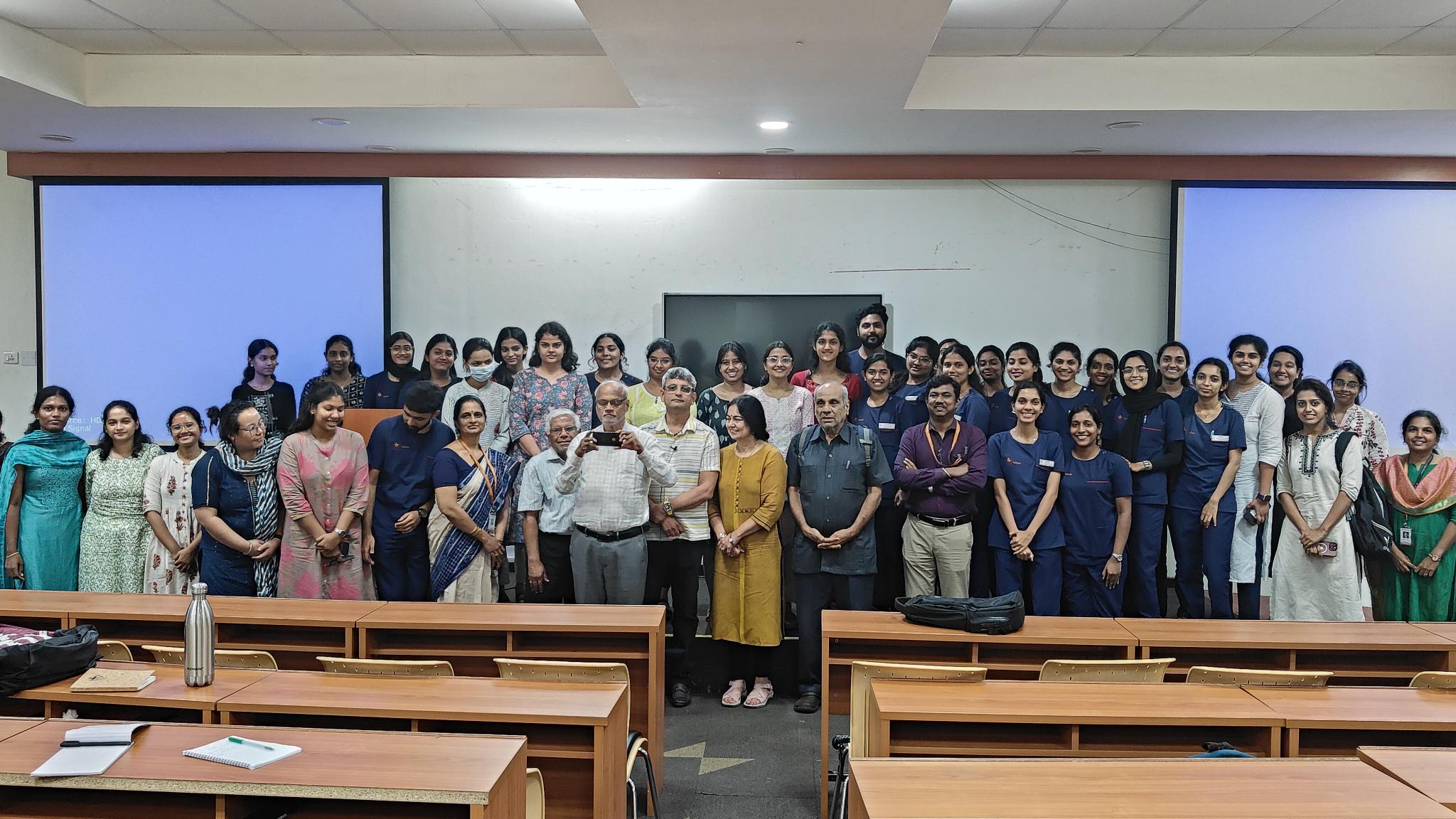 On September 5th, 2024, at MCHP, faculty and students from the Department of Speech and Hearing, alongside their colleagues from the Department of ENT, convened to participate in Dr. Hari Subramanian's presentation entitled "The Emergence of Neurolaryngology." Leveraging his extensive expertise in neurolaryngology, Dr. Subramanian took the audience on a comprehensive journey through the pivotal research findings that have given rise to neurolaryngology as a distinct field. His presentation meticulously delineated the evolution of neurolaryngological practices, emphasizing the importance of interdisciplinary collaboration between speech and hearing science and ENT. The role of neurolaryngology in diagnosing and treating a wide range of neurological disorders affecting the larynx and voice provided invaluable insights for both aspiring and seasoned professionals in attendance. The session concluded with an interactive segment and a Q&A session.