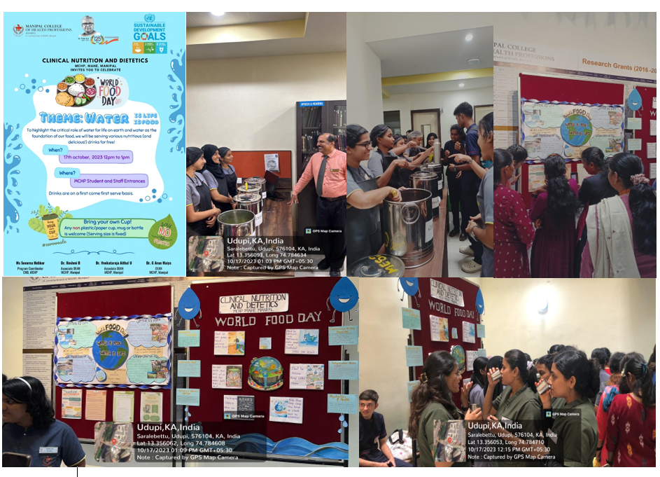 The Clinical Nutrition and Dietetics program, Manipal College of Health Professionals, MAHE, Manipal, celebrated World Food Day on 17th October 2023 (Tuesday) from 12:00pm – 13:30 pm. This was held to highlight the critical role of water for life on Earth and water as the foundation of our food. Various nutritious and delicious drinks were served to the students and faculty of Manipal College of Health Professionals, MAHE, for free of cost.