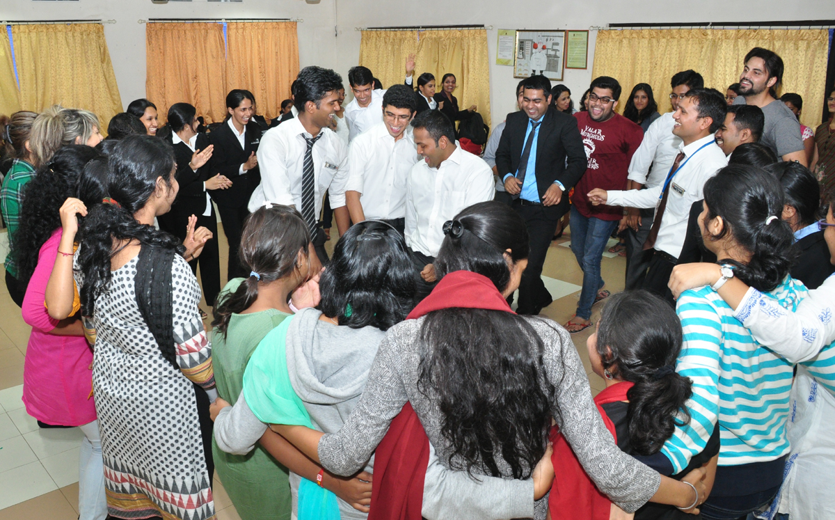 The orientation started at 9 am with student registration and followed by a tea break with parents & faculty at Chhaya. The student registration continued till 1 pm and then the students along with their parents & faculty had an appetizing lunch. At 2.30 pm an interactive session was held in Chanakya for the fresher(s) by the faculty and the senior MSc. students. It began with the introduction in pairs followed by the management games like guess the personality by asking 5 questions. In the other game students were asked to make a team and pass a ball to one another in a specific pattern. Another game of saving yours and bursting others balloons was also played. The winners of every game were appreciated and awarded. Every student took part in one or the other activity. The program for the day concluded with everybody dancing on the beats! The elated students enjoyed and gained a lot from this ice breaking session which continued till 5 pm.