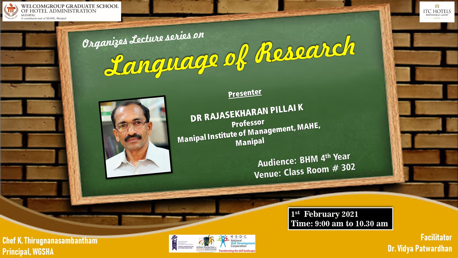 Guest talk on 'Language of Research; by Dr Rajshekharan Pillai