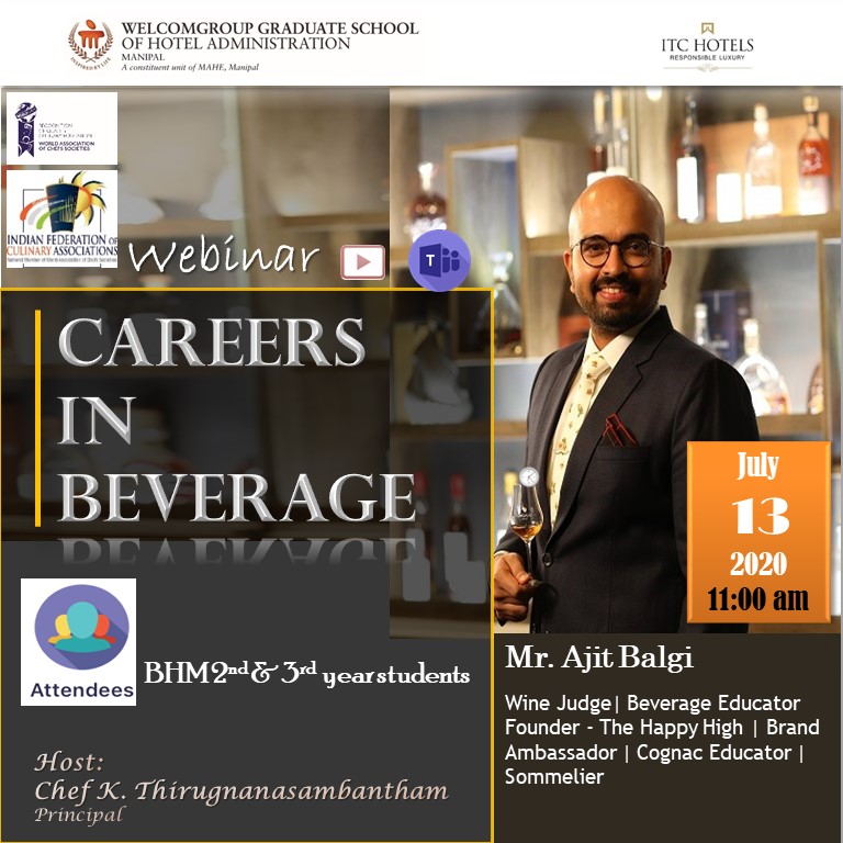 • Webinar on Careers in Beverage by Mr. Ajit Balgi